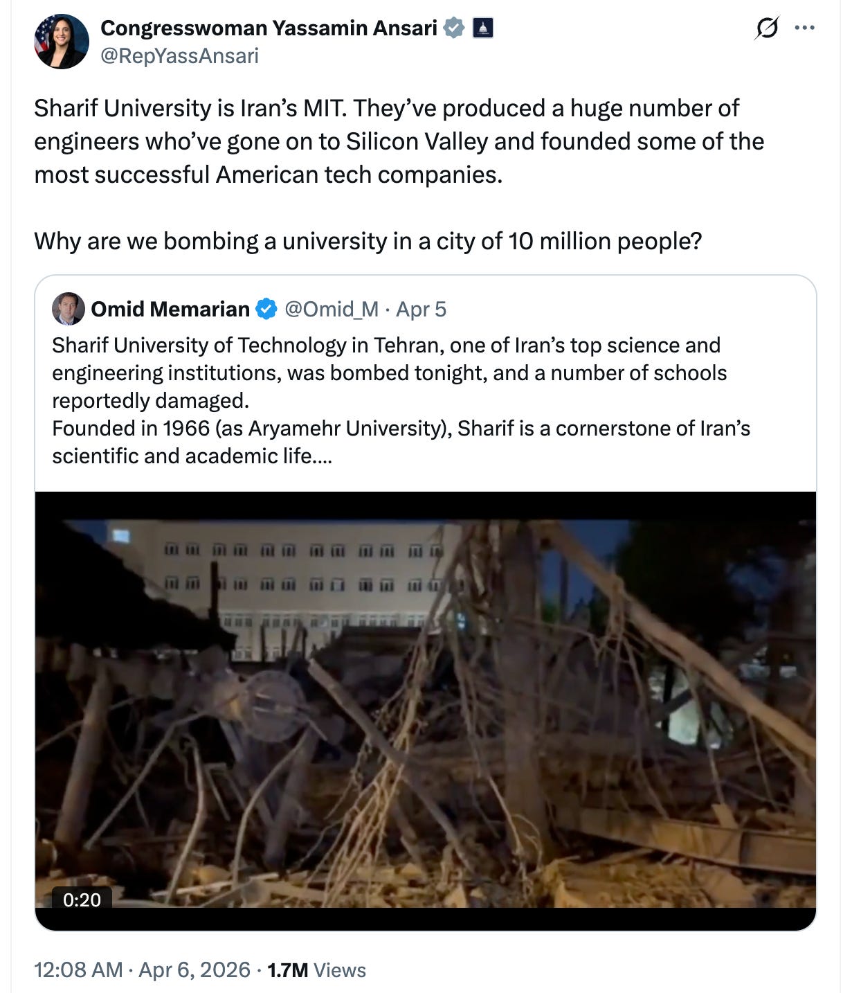 On Instagram, Twitter, and TikTok, we saw videos of smoke billowing into the sky as people screamed and their homes burned. Images and videos of people forming human chains around power plants in Iran, leveraging the value of their own lives in hopes of deterring an American-led genocide, went viral. Refugees held their loved ones, killed in airstrikes, in their arms and pleaded for peace.